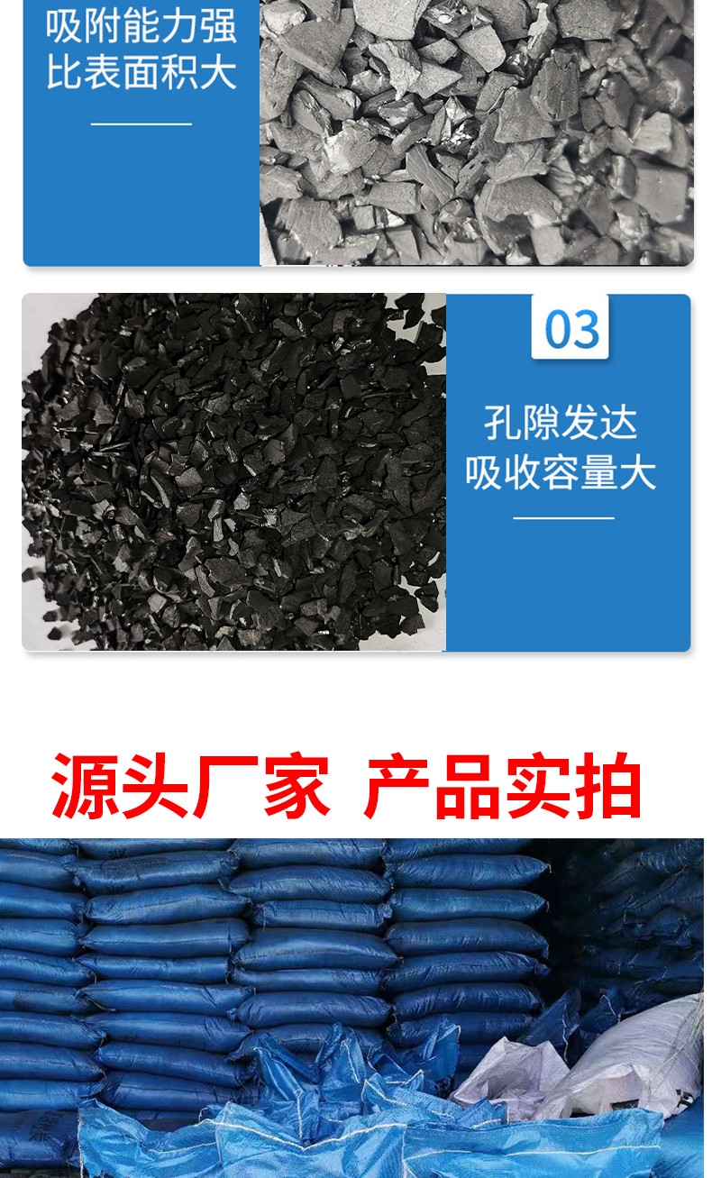 1、強度高、孔隙結構發達、比表面積大、吸附性能好、吸附性能強、易再生、經濟耐用。