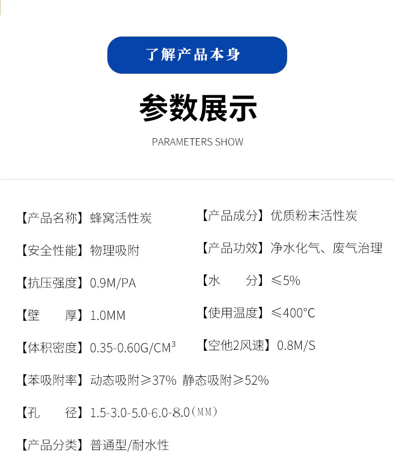 首先,看蜂窩活性炭的密度大小,也可以理解為孔隙的多少,孔隙越多,吸附能力更強。