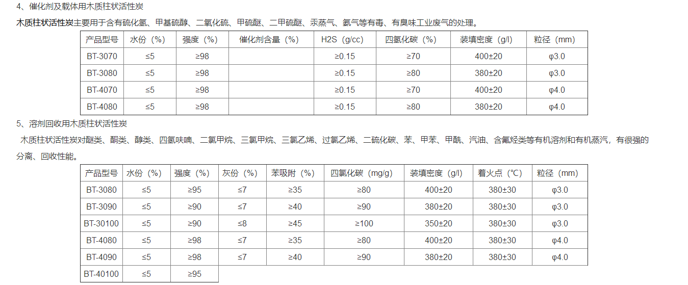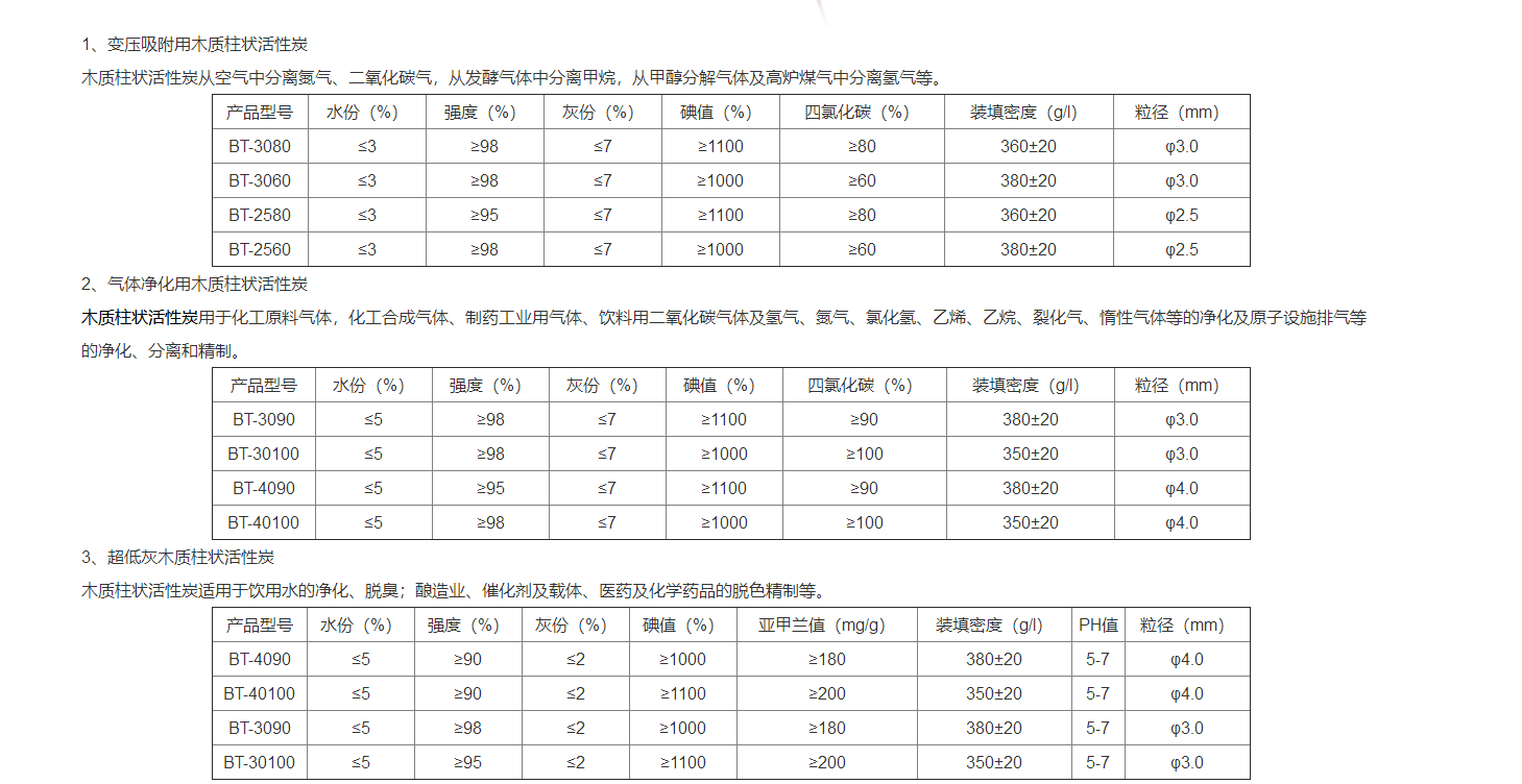 適用性:①、氣相吸附 ②、汽油回收 ③、有機溶劑回收 ④、雜質和有害氣體的祛除。5、液相脫色除味(蔗糖脫色、木糖脫色、味精脫色、檸檬酸脫色及藥品、化工產品、食品添加劑的脫色、精制和去雜質純化過濾)。