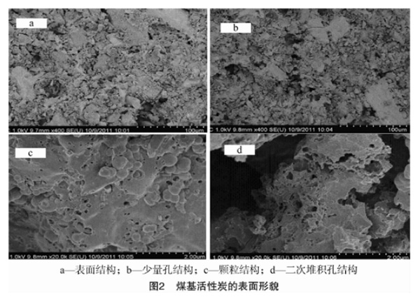 煤質活性炭與椰殼活性炭均未經過進一步處理。掃描電子顯微鏡型號為Hitachi s-4800。
