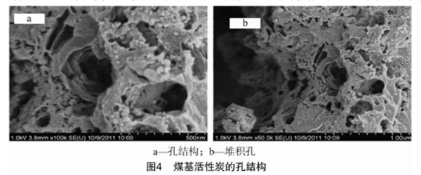 圖4為煤質炭的電子顯微鏡掃描照片。