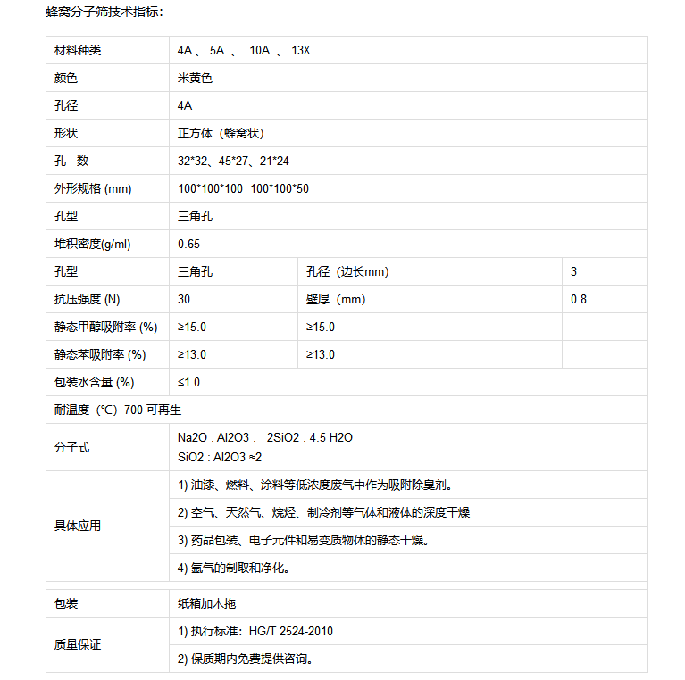 蜂窩分子篩是一種吸附性能好、無二次污染、可高溫再生的高效分子篩載體,。本公司蜂窩沸石分子篩具有以下優點: