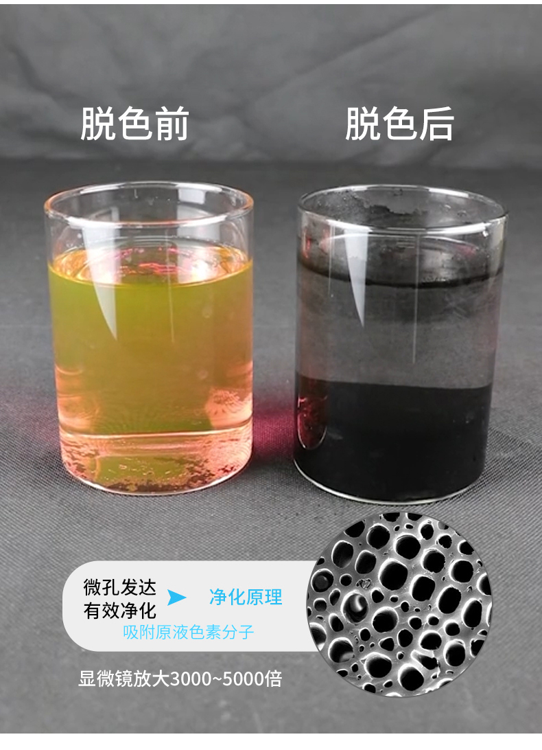 該產(chǎn)品由木屑制成,并通過獨特的磷酸生產(chǎn)工藝進行精制。它具有較大的比表面積,吸附能力強,性能穩(wěn)定。主要用于糖,油,食品添加劑,化學添加劑,燃料中間體和藥物制劑等高顏料溶液的脫色,凈化,除臭和雜質(zhì)去除。